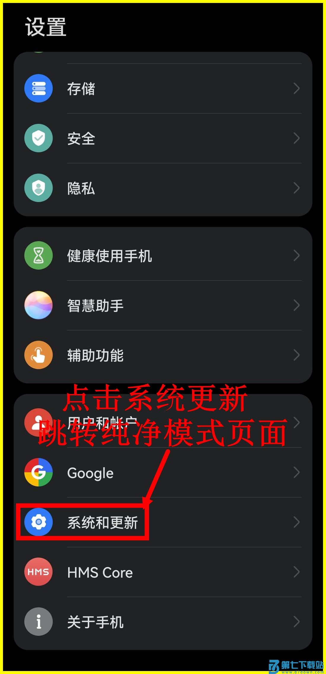 进入手机设置页面,点击(系统和更新)。