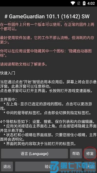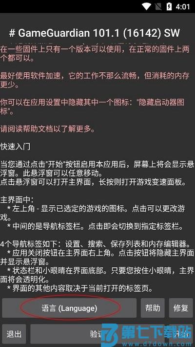 1、在本站下载gg修改器进入软件后,点击底部语言即可修改应用的语音