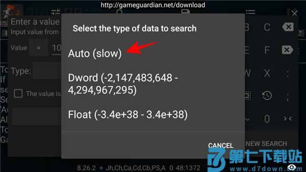 或者可以选择Auto 让GG 修改器自己搜寻游戏内可以修改的参数。