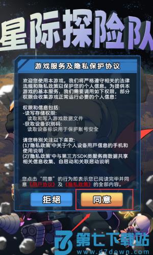 1、点击同意按钮,确认隐私政策开始游戏。