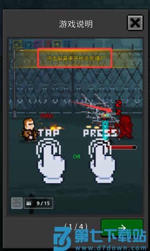 2、点击屏幕开枪,或长按自动射击消灭僵尸。