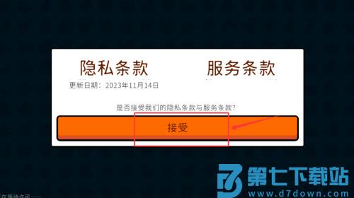2、点击接受按钮,确认隐私和服务条款内容。