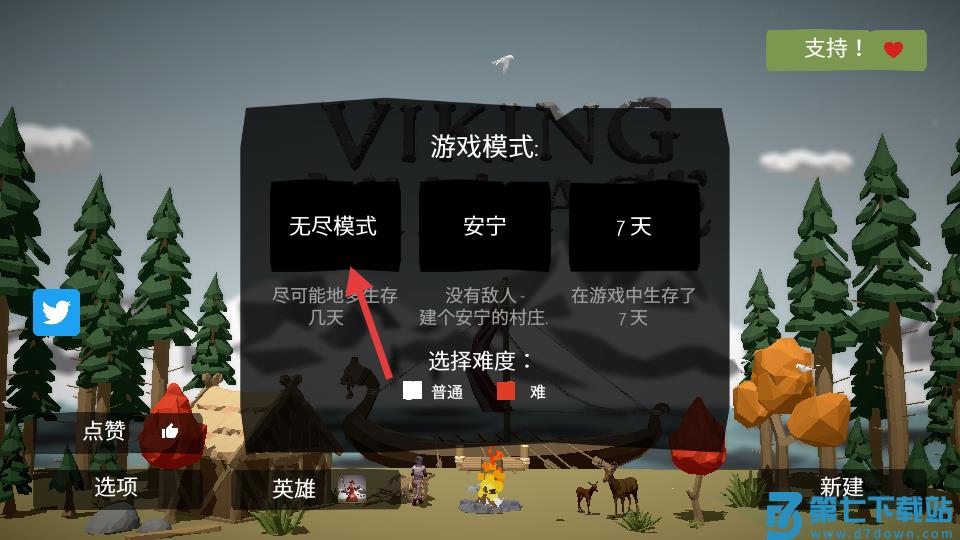 无限:尽可能多地生存。敌人每天晚上变得更强壮