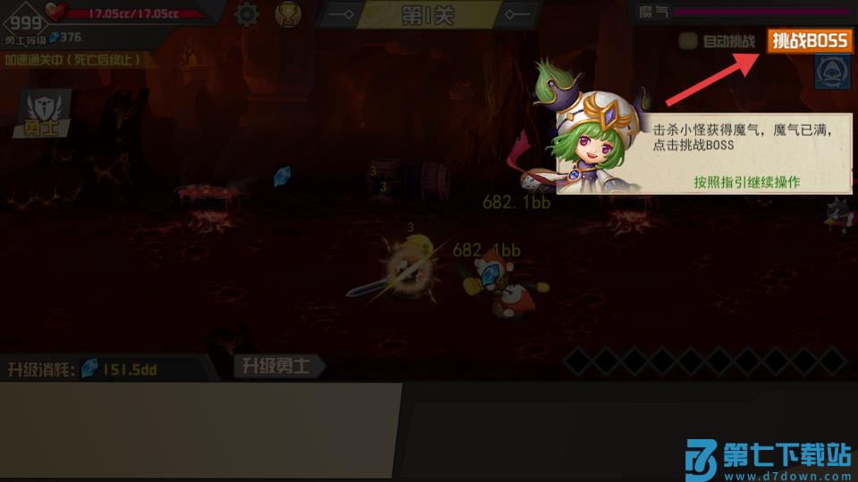 2、运用策略搭配技能进行即时战斗消灭魔王挑战关卡。