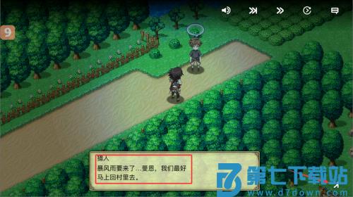 1、点击红框箭头指向的猎人角色,继续对话推进剧情。