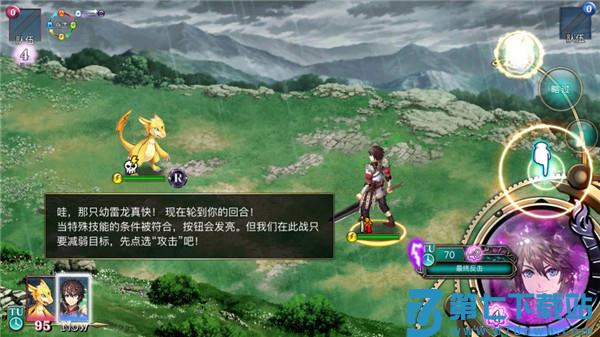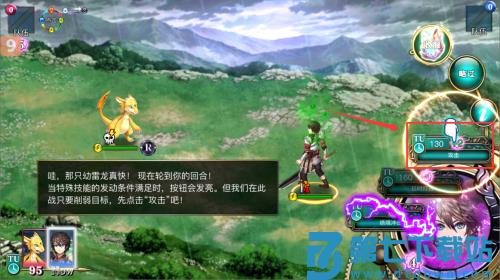 3、根据红框提示点击攻击按钮,对幼雷龙发动战斗。