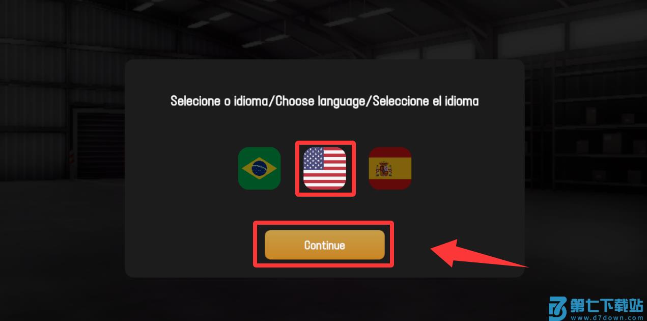 1、进入游戏点击选择语言然后继续。
