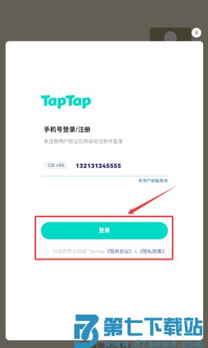 3、勾选同意协议后,点击红框箭头指向的登录按钮完成注册。