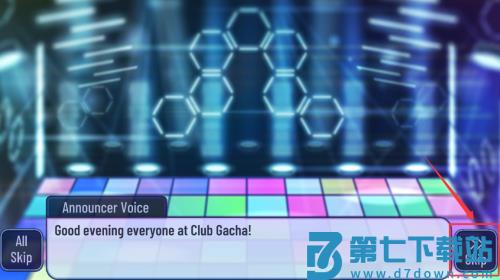 3、查看主持人语音提示后,点击红框跳过按钮继续游戏。