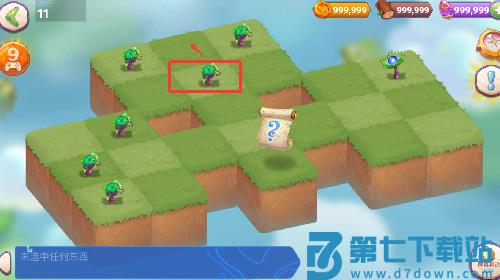 1、进入游戏点击红色框框里的植物往上移动合并。