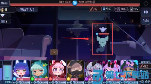 2、在关卡开始界面点击红框标注的WAVE 1/2按钮,确认当前波次。