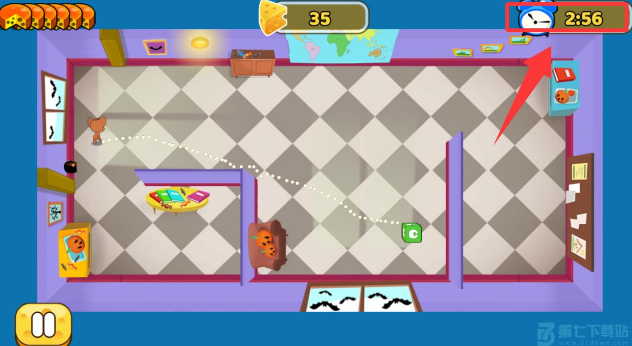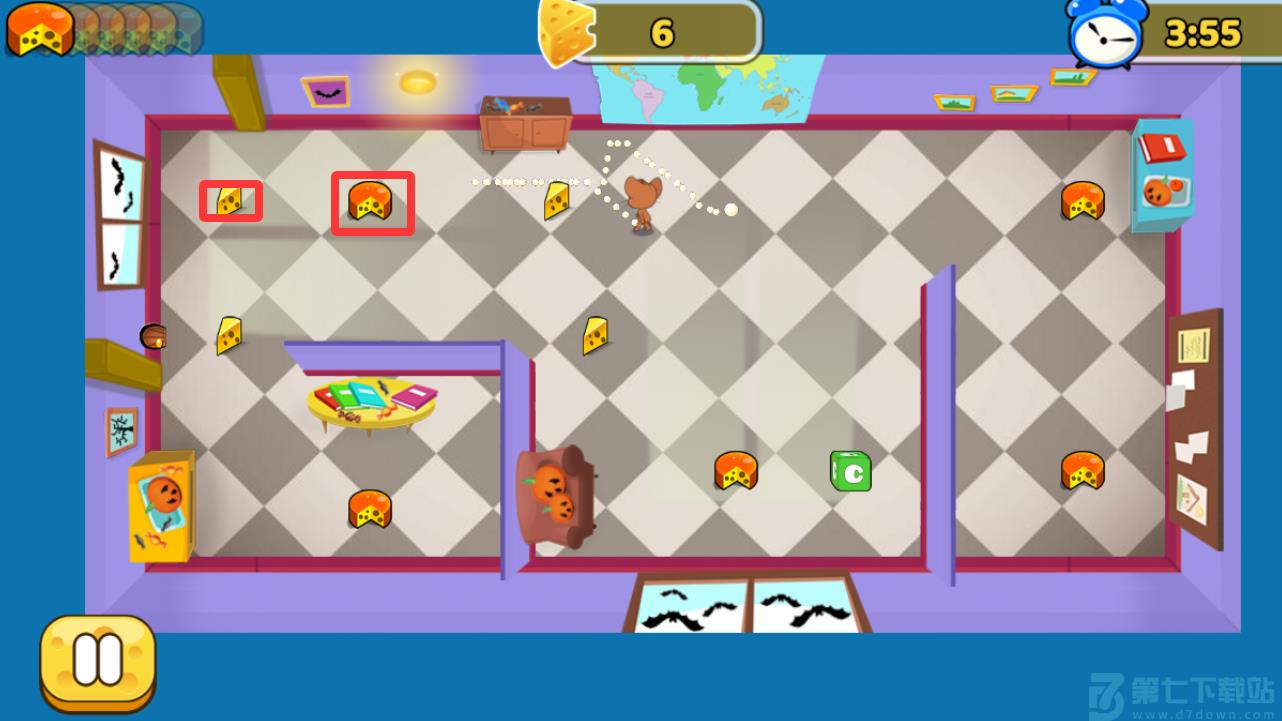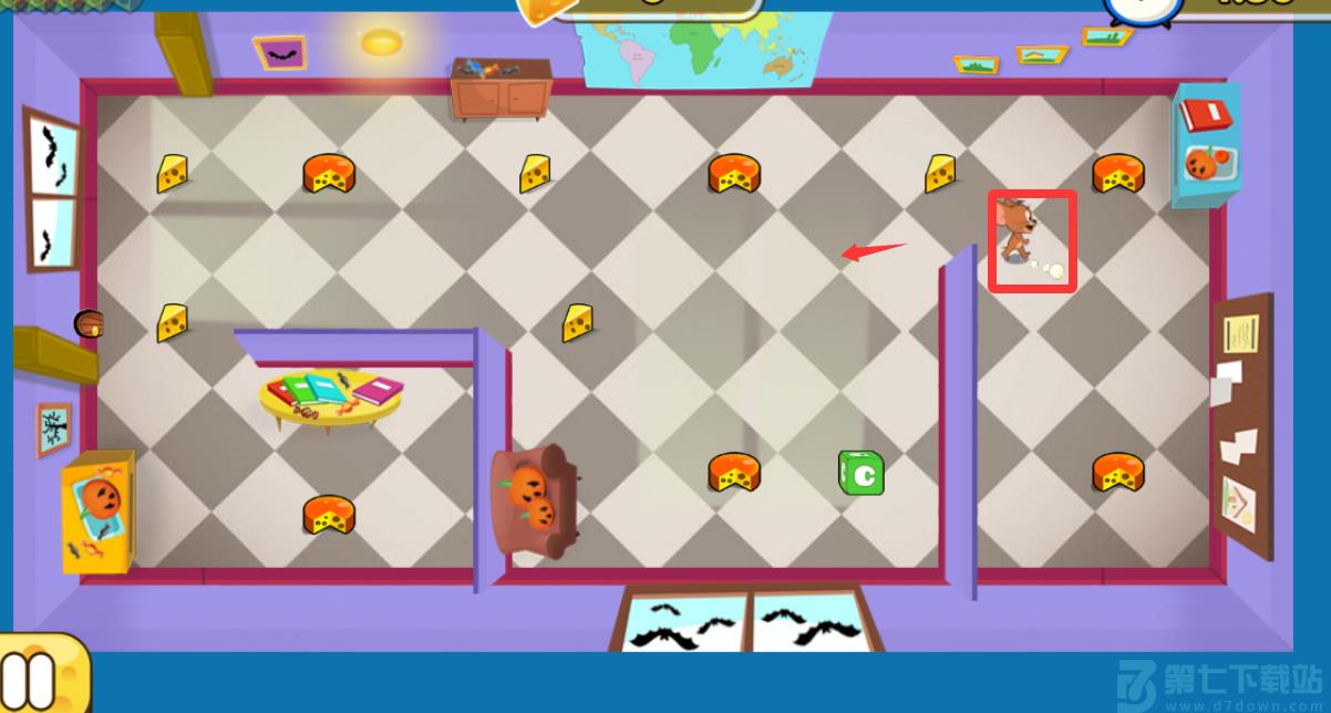 2、移动角色把这些奶酪和蛋糕都捡取。