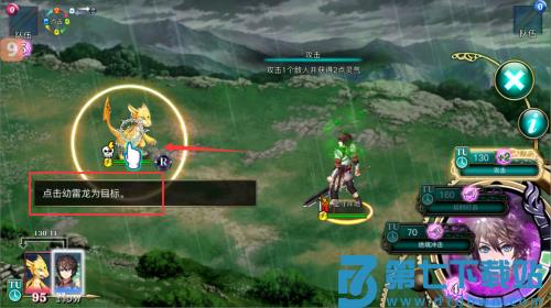 1、点击红框箭头指向的幼雷龙,选择它作为攻击目标。