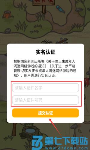 3、在实名认证界面填写证件信息,点击红框标注的提交认证按钮。