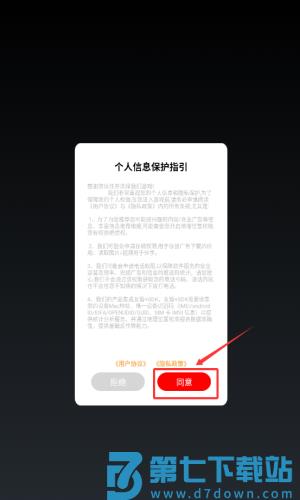 1、阅读个人信息保护指引后,点击红框标注的红色同意按钮继续。