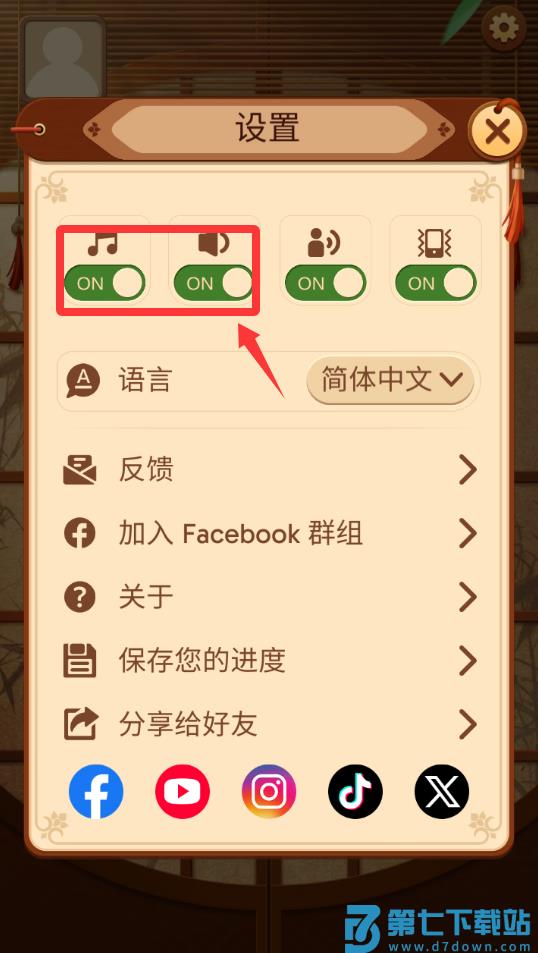 1、进入游戏点击设置把声音打开来体验游戏。