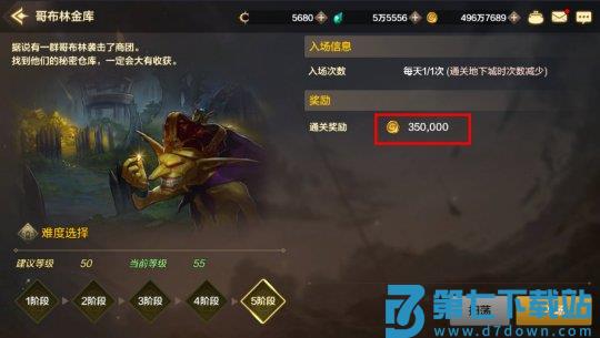 2、50级之后可以进入哥布林金库,每个号每天可以刷35万金币。