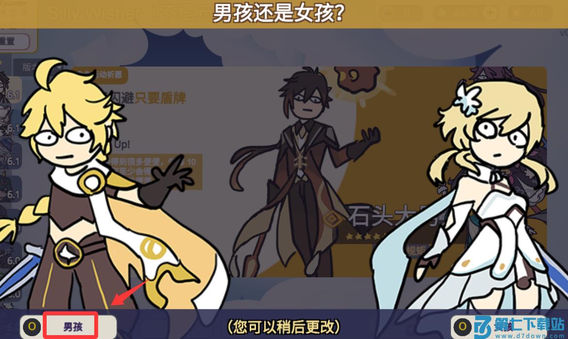 1、进入游戏点击选择男孩还是女孩点击选择男孩。