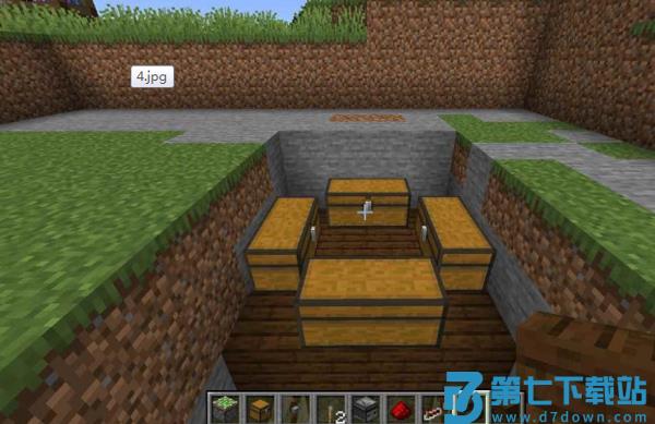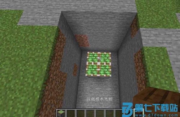 1、首先我们需要挖1个深坑,长7宽4深5,在其中摆放8个粘性活塞;