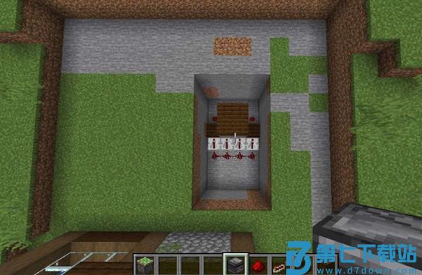 6、最后我们再铺放木板进行隐藏,再摆好1个按钮就做好我们的地板机关啦!