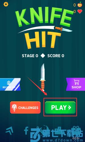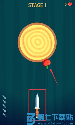 3、按照红框提示将小刀投向苹果,完成第一关挑战。