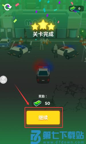3、点击红框箭头指向的继续按钮,领取关卡奖励。
