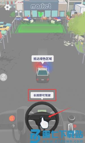 2、长按红框标注的方向盘图标,驾驶警车前进。