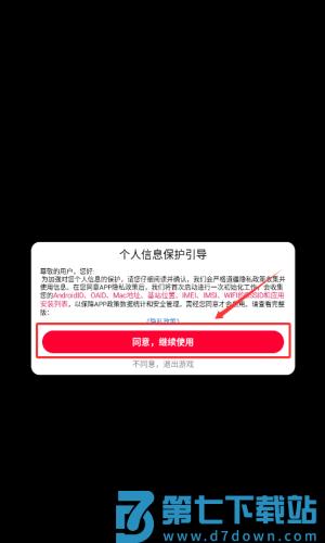 1、阅读隐私政策后,点击红框标注的同意并继续按钮。