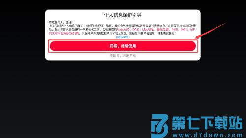 1、阅读隐私政策后,点击红框标注的同意继续使用按钮。
