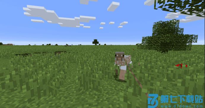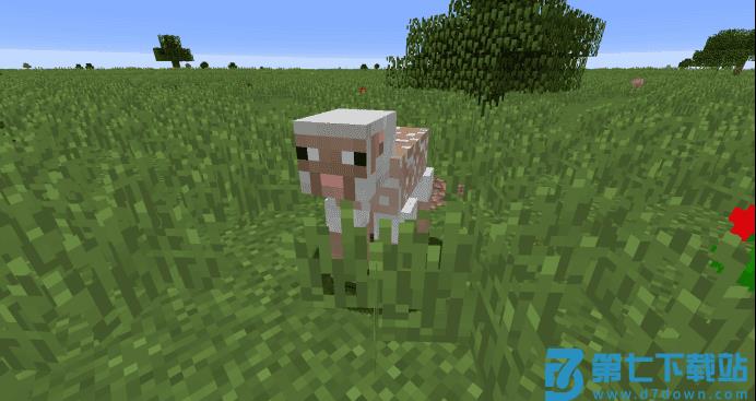 吃掉一块草皮的羊,可以看到其身旁出现了一块泥土