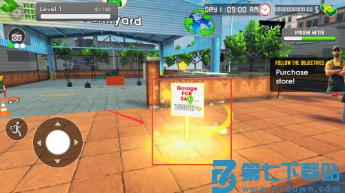 3、点击红框标注的购买车库告示牌,花费10000金币解锁。
