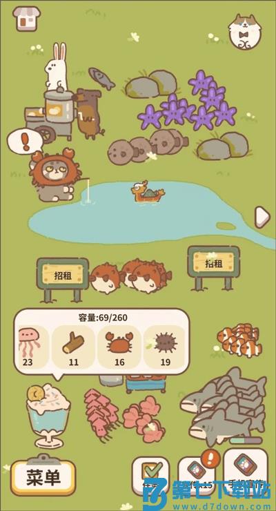 2、解锁并布置餐厅设施提升环境吸引更多动物。
