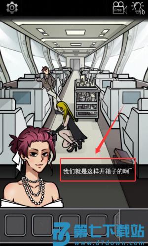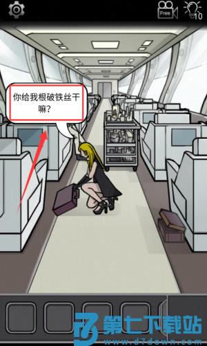 1、根据红框箭头提示,用铁丝打开紫色手提箱。