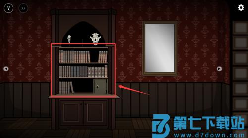 3、按照红框箭头提示,向右移动书架寻找通道。