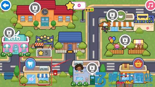 2、选择红框标注的牙科诊所,点击数字5建筑开始经营。