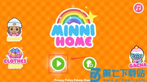 1、点击红框箭头指向的绿色播放按钮,进入米妮之家游戏。