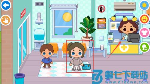 3、控制红框内地毯上的小女孩,与医院前台互动。