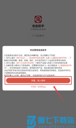 1、阅读用户协议后,点击红框标注的红色同意按钮进入应用。