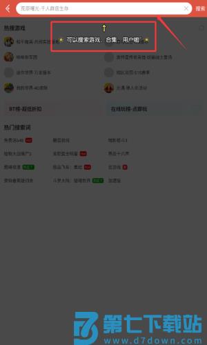 3、在搜索框输入游戏名,或点击红框热搜词快速查找。