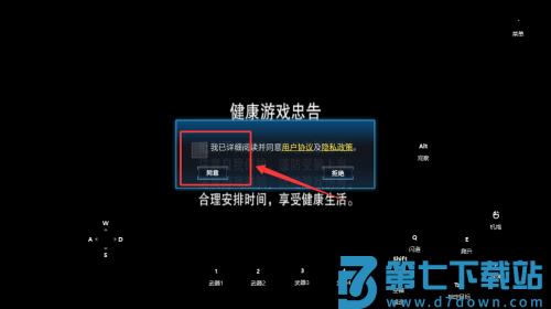 1、阅读健康游戏忠告后,点击红框标注的同意按钮继续。