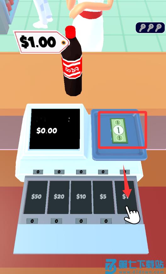 2、进入游戏售买1瓶可乐然后点击收钱。