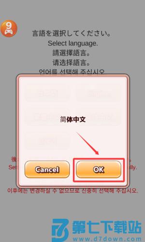 2、点击橙色确认按钮,完成语言选择。
