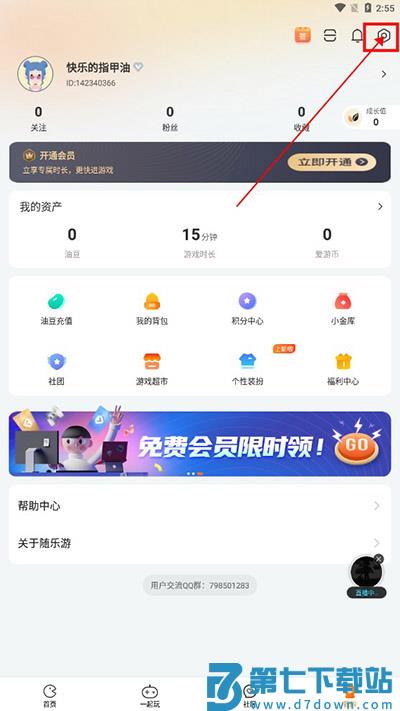 1、进入随乐游云游戏主界面,点击右下方我的;