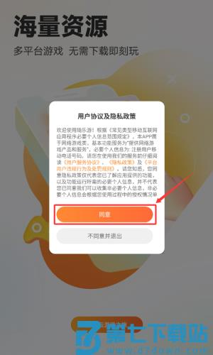 1、阅读用户协议后,点击红框标注的同意按钮继续使用。