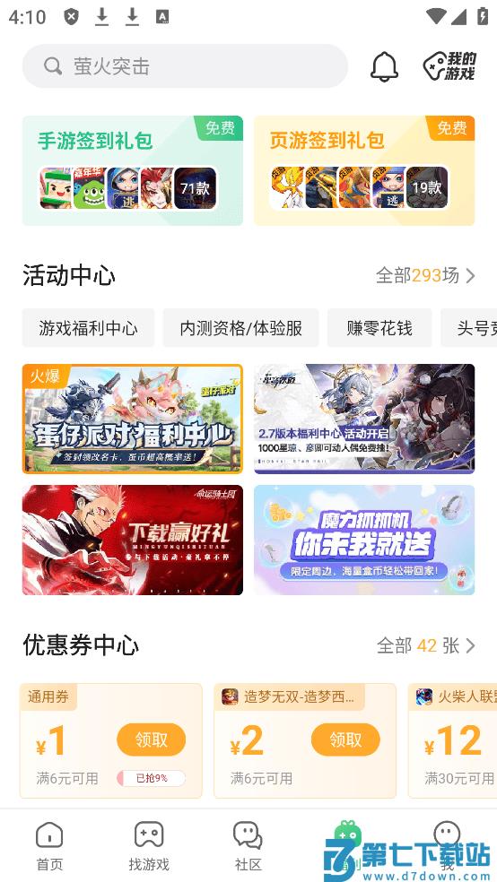 最后,点击福利,分为手游专区与电脑专区,这里都是有关游戏的福利。