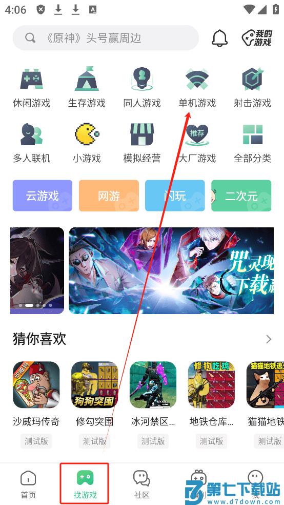 首先在手机上打开游戏盒子,如下图所示,包含了新游、单机、生存、冒险、网游、在线玩等多种题材;