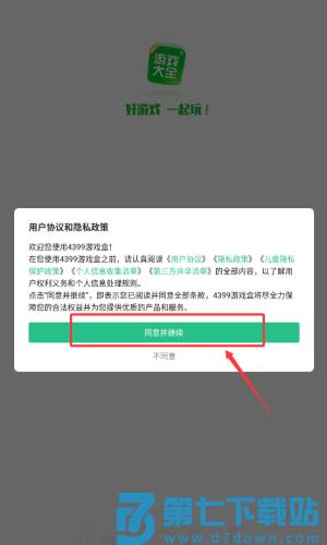 1、阅读用户协议后,点击红框标注的绿色同意并继续按钮。