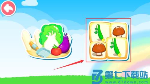 3、根据红框箭头提示,将蔬菜放入对应形状的篮子。
