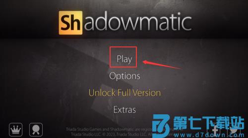 1、点击红框标注的Play按钮,开始Shadowmatic游戏。