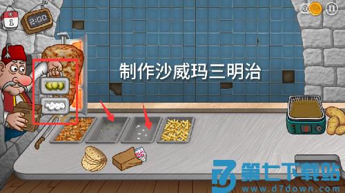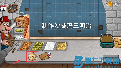 2、然后点击红色框框里的烧瓶制作沙威玛三文治。